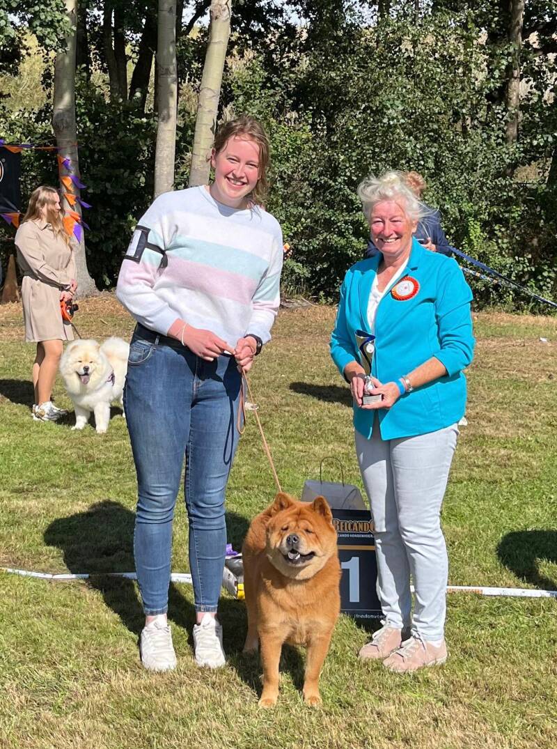 Op zaterdag 13 september vond de clubmatch van de CCVH (Chow Chow Vereniging Holland) plaats. Naast dat wij verantwoordelijk waren voor een workshop 'bewegen met je Chow', hadden we onze Cato ook ingeschreven voor de clubmatch. Met een sterke open klasse van vijf teven hadden we er niet zoveel van verwacht. Met een korthaar val je nou eenmaal vaak niet zo op. Tot onze grote blijdschap won Cato de open klasse. Even later, tijdens de strijd om de beste teef, werd Cato door keurmeester Erna Upmeijer uitgekozen tot reserve beste teef. Hiermee haalde zij haar eerste CAC. Aan het einde van de show kreeg Cato ook nog de prijzen 'beste kleur' en 'beste scowl'! En dat voor een hond die eigenlijk nooit showt :)